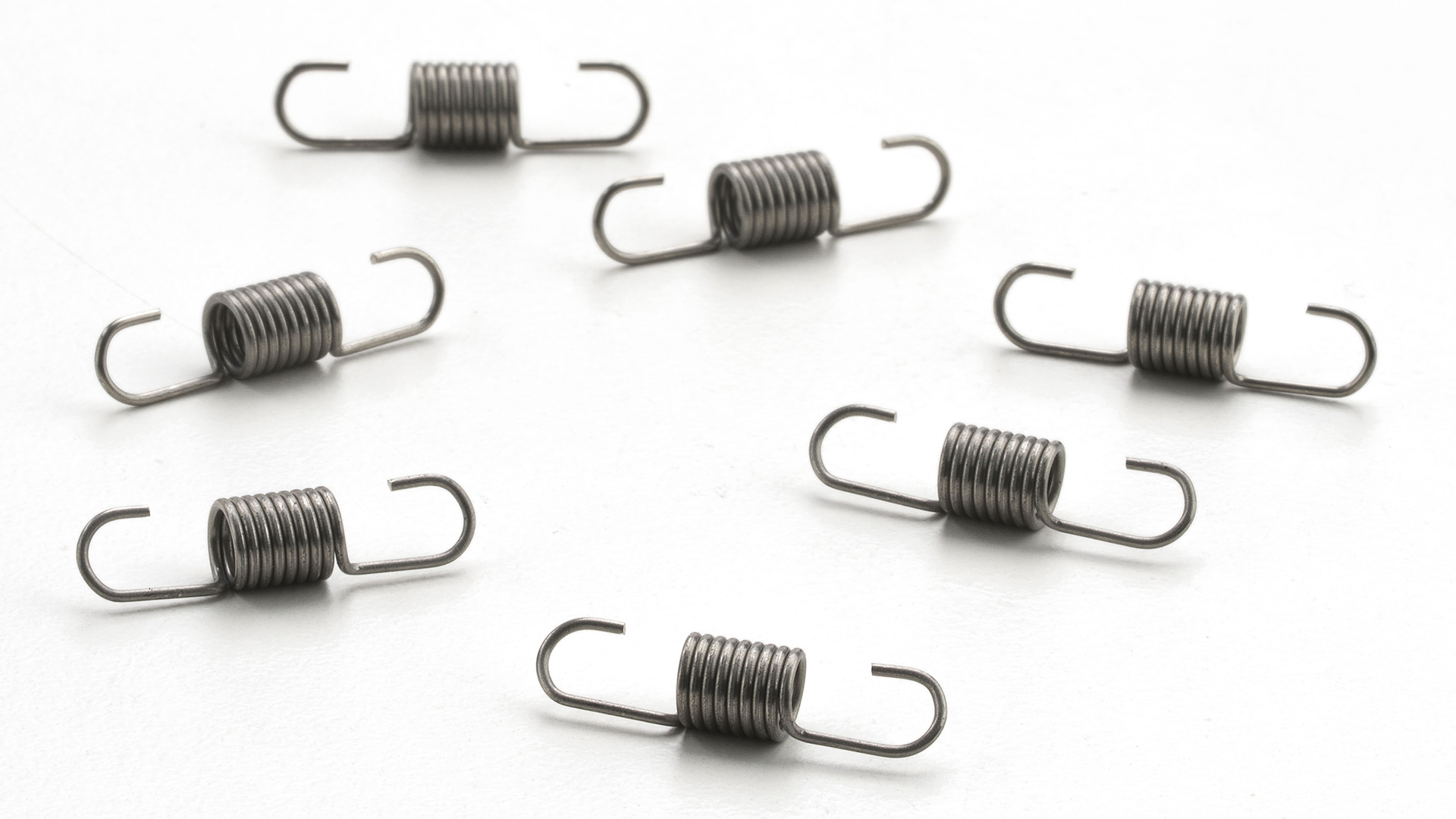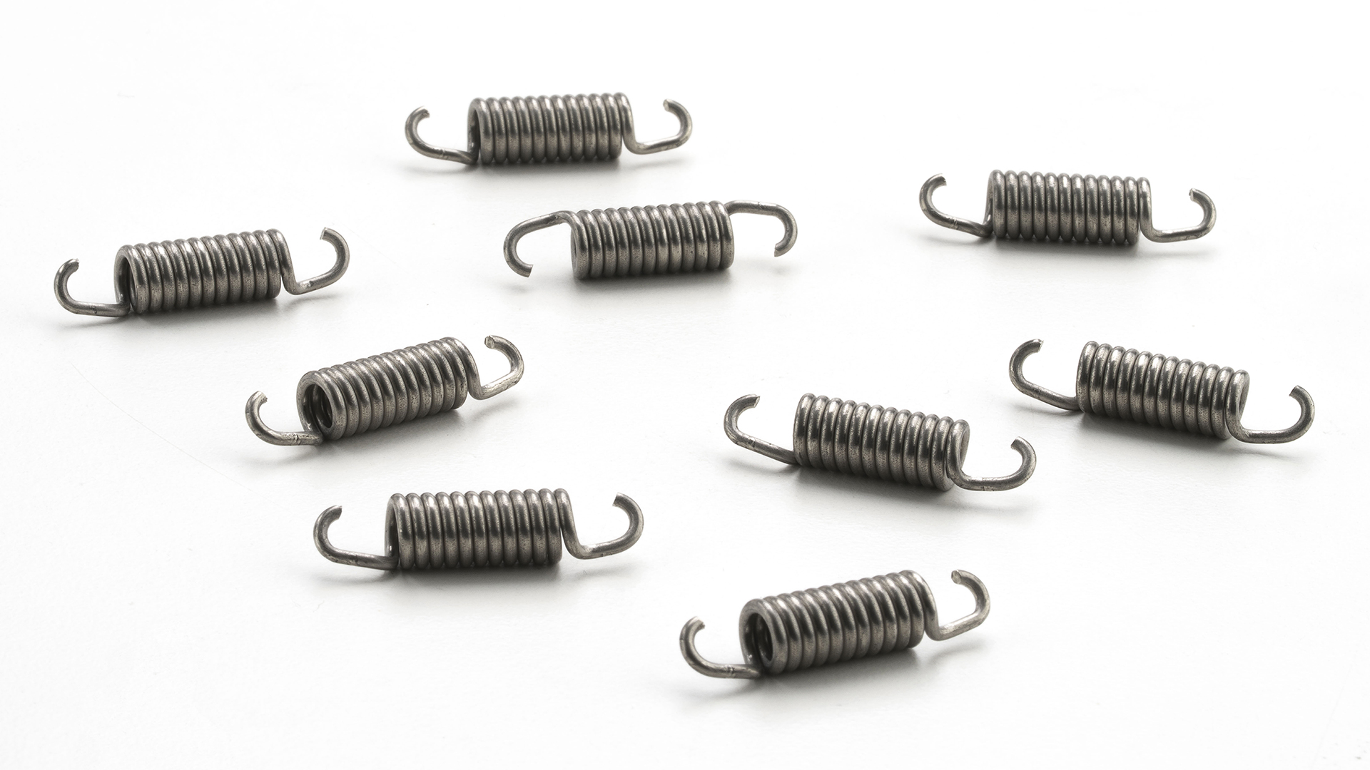 We manufacture extension springs both compliant with UNI EN 13906-2 and according to customer specifications, with various types of loops and inserted elements, right- or left-handed winding, and subjected to stabilization heat treatment, shot peening, surface protection treatments, passivation, and other specific treatments requested.