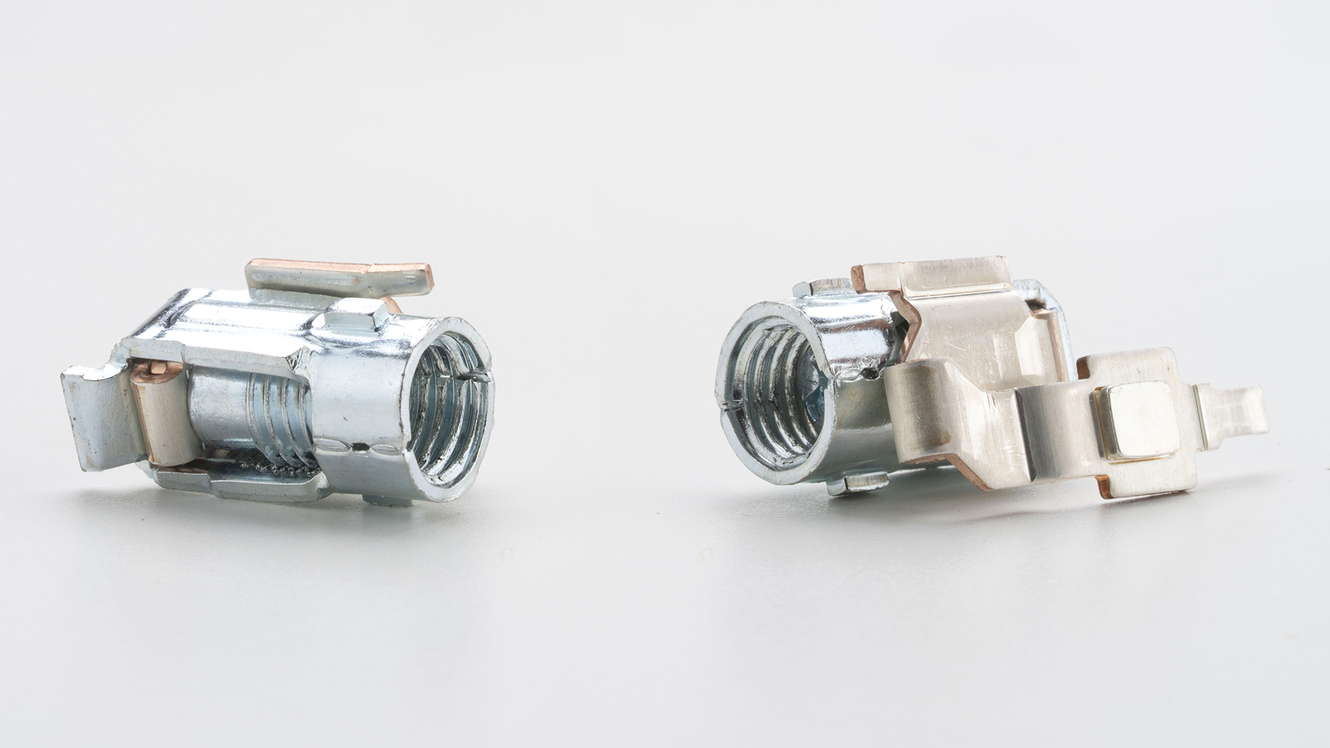 Particolari metallici da noi prodotti, assemblati mediante l’ausilio di macchine automatiche a tavola rotante o impianti Bihler equipaggiati con sistemi di saldatura a resistenza.