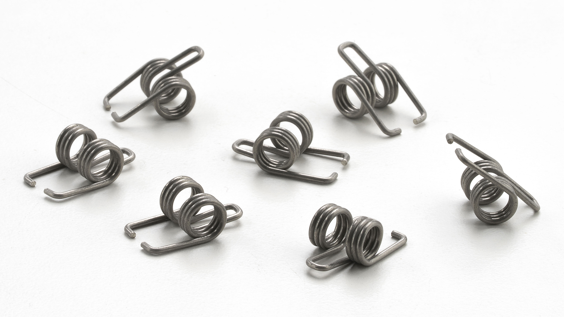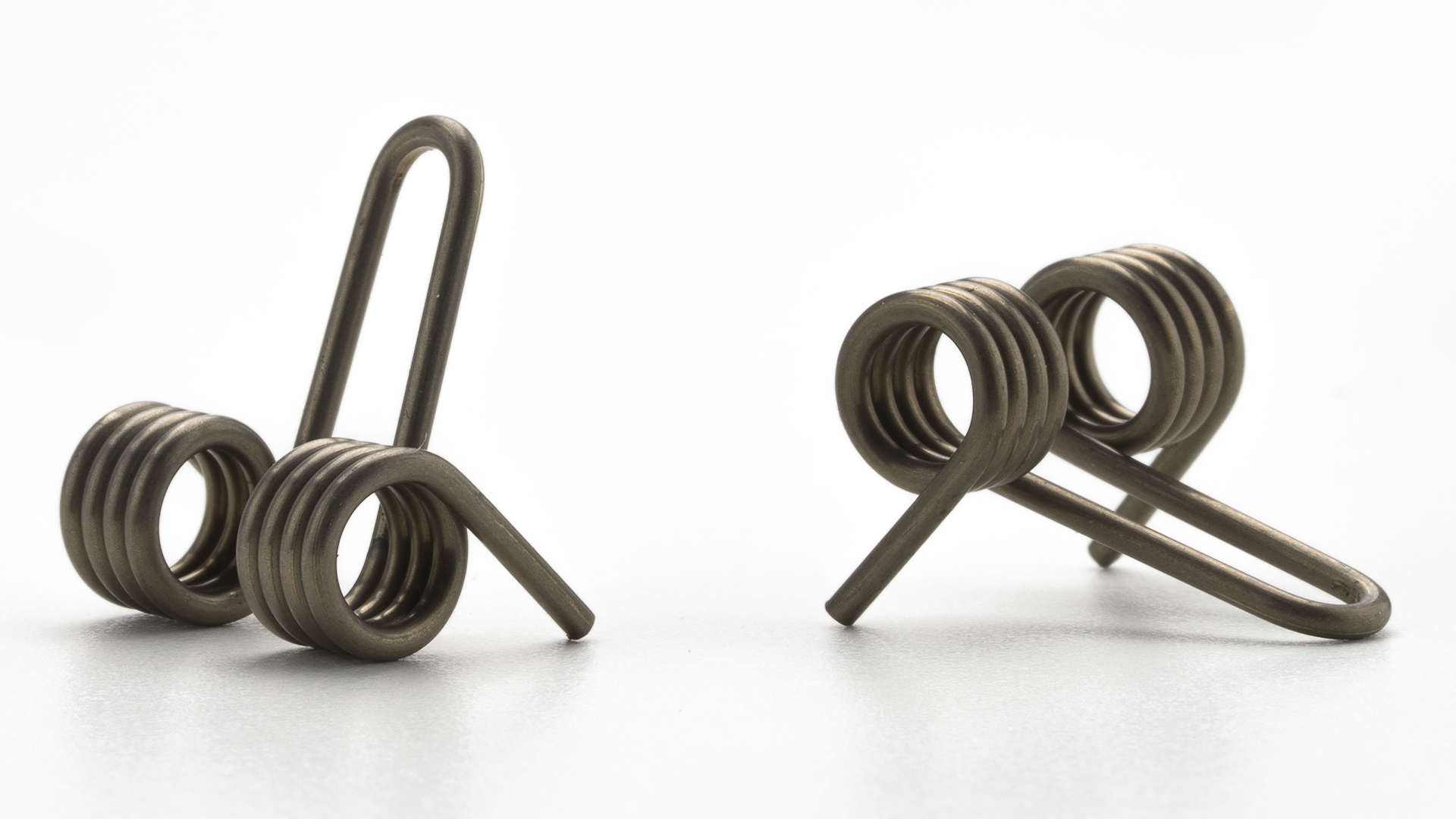 Progettiamo e realizziamo molle a doppia torsione a elica cilindrica in filo tondo, con diametri da 0.10 mm fino a 16 mm e sempre secondo disegno, specifica e/o campione del cliente.